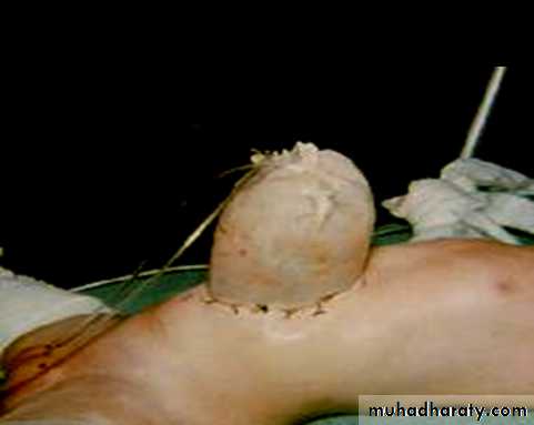 Surgery is an emergency operation due to exposure of intestine to the environment1-Primary closure is attempted with the same principles of omphalocele closure.
