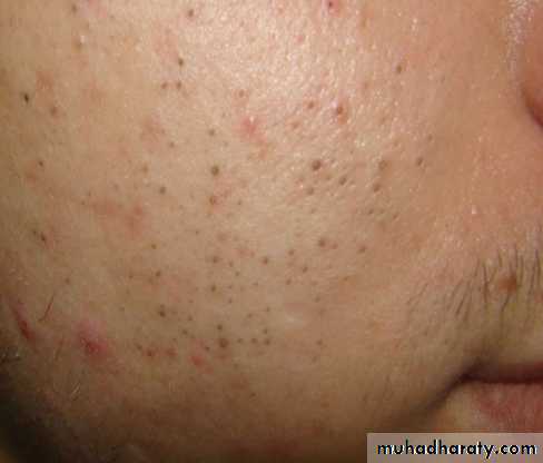 Acne: (note: in rosacea no comedones)