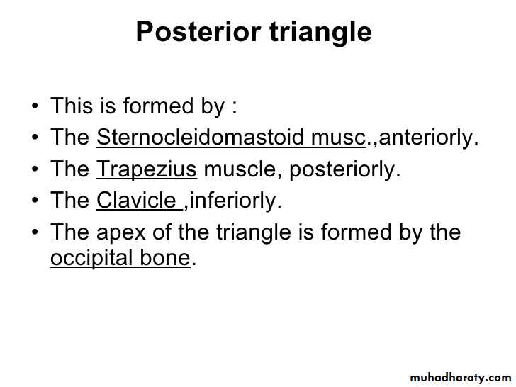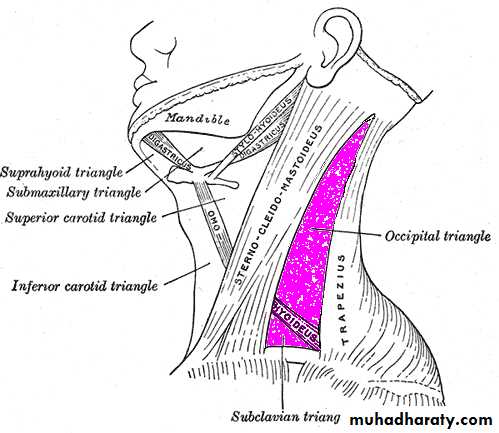 3. The spinal accessory nerve (Cranial Nerve XI) runs downwards and laterally across the triangle lying between the two layers of the fascia forming the roof.