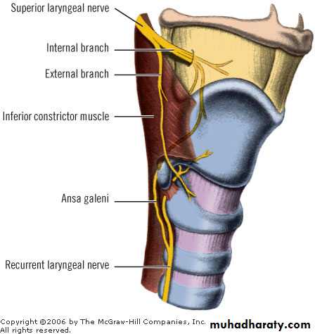 A. Sensory Nerves■■ Above the vocal cords: by The internal laryngeal branch of the superior laryngeal branch of the vagus