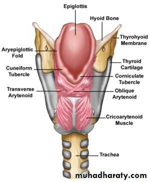 Corniculate cartilages: Two small conical-shaped cartilages articulate with the arytenoid cartilages. They give attachment to the aryepiglottic folds.