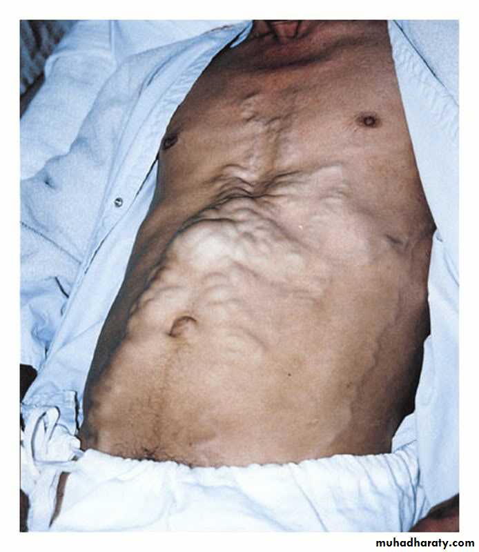 • Paracentesis; 3-5 litres daily is safe, provided the circulation is supported by giving intravenous colloid such as human albumin (6-8 g per litre of ascites removed) or another plasma expander.