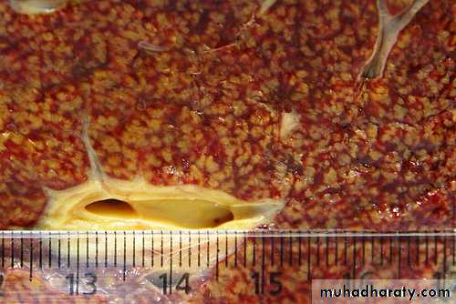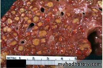 Liver cirrhosis; Is the irreversible fibrous scarring and hepatocellular regeneration that leads to loss of normal hepatic lobular architecture.It is a common disease. It can occur at any age. World-wide, the most common causes of cirrhosis are chronic viral hepatitis and prolonged excessive alcohol consumption.