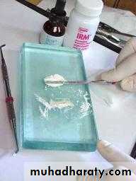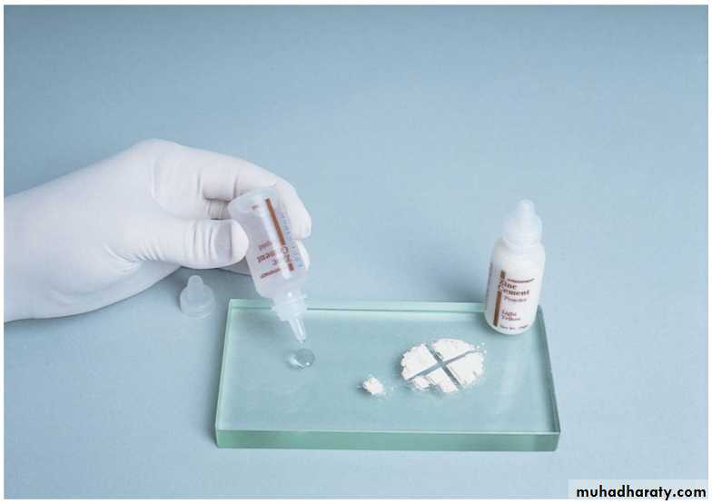 Zn phosphate mixes on glass slab with spatula liquid add in small increments