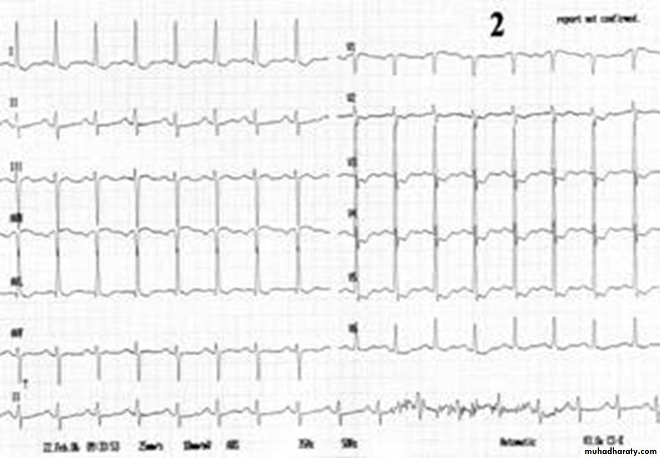Cardio.Lect.4 1 Prof.HS Al-Janab Lab.investigations of angina: Generaltests.1.G.U.E.(glucose→DM2.BS&BU.3.Hb.→Anaemia.4.lipid profile B.Special cardiac investigations. 1CxR→*Cardiomegaly*CHF*aortic valve disease. 2.ECG. N in 50% of cases as pain-free pts,may have (N) ECG but Typical ECG changes of myocardial ischemia are (horizontal or down slopping ST↓ ≥ 1mm±T↓. Transient ST↑→prinzmetal angina Note;Typical ST seg.depression in leads V3-V6→myocardial ischemia.