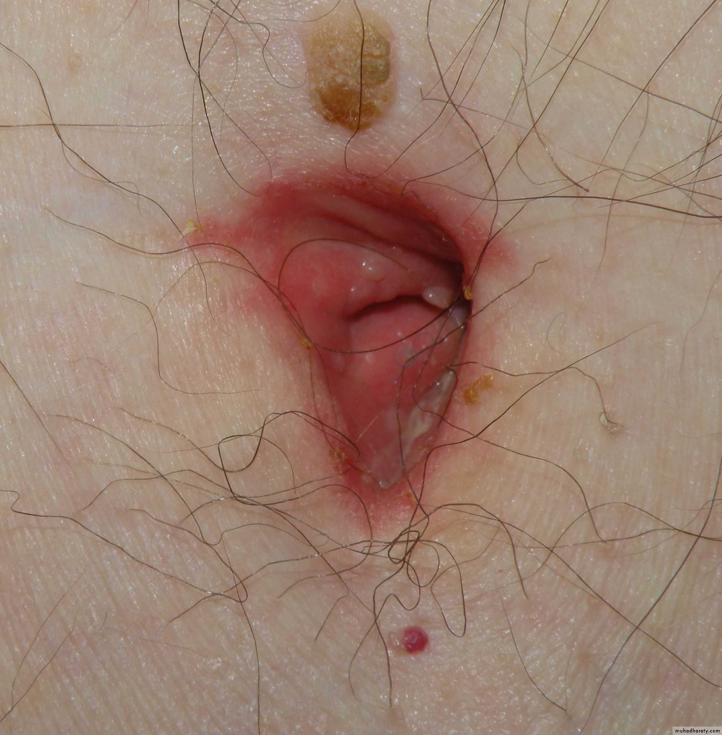 Patients may present with a persistent discharge from the umbilical area.Causes: