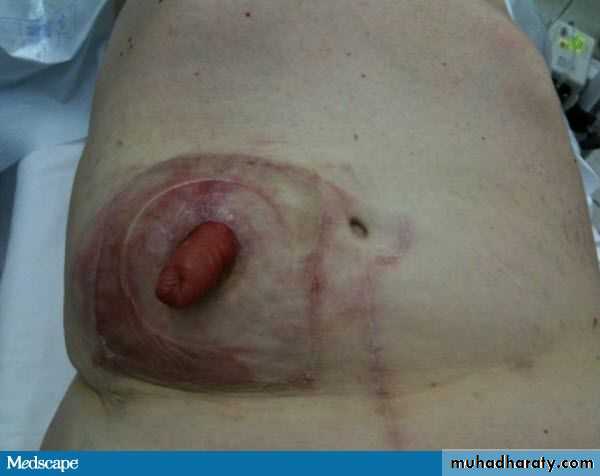 Parastomal hernia Is a hernia induced by surgery by bringing bowel out through the abdominal wall in a process called colostomy or ileostomy