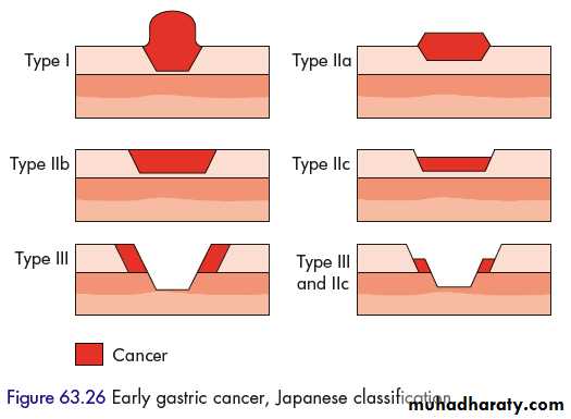 Early cancer: limited to mucosa & submucosa i.e T1, any N.Advanced cancer involves the musculais.