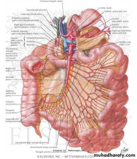 Arterial: superior mesenteric arteryVenous: superior mesenteric v. portal v.