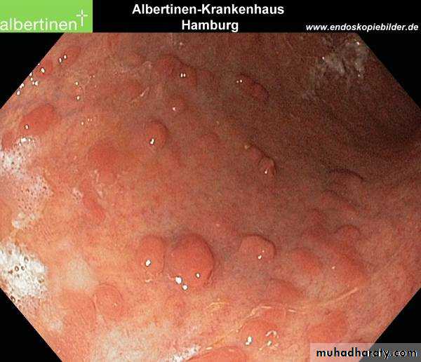 Proctitis (Hyperemic mucosa, bleeds on touch and pus like exudates).