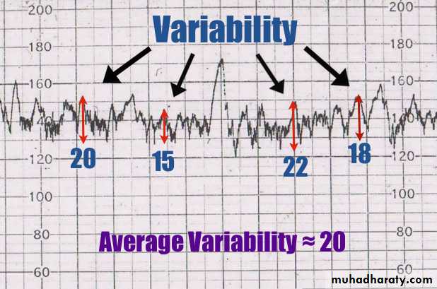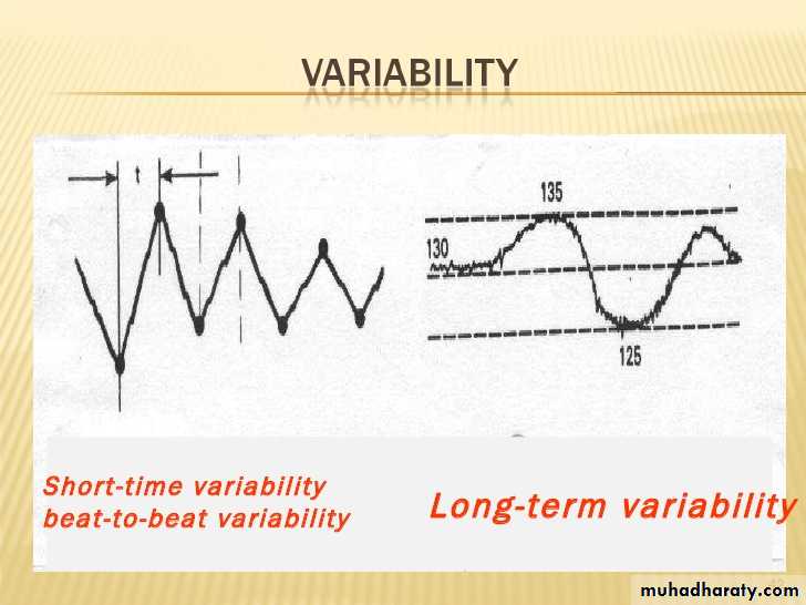 Baseline variability is defined as fluctuations in the fetal heart rate and result in the waviness of the baseline. Two forms of variability;short term variability is measured by the variation in the beat-to-beat interval (R-R interval in fetal ECG) measured by internal fetal electrode.