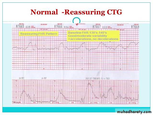 Normal CTG:- include all the followingBaseline rate 110-160 bpm