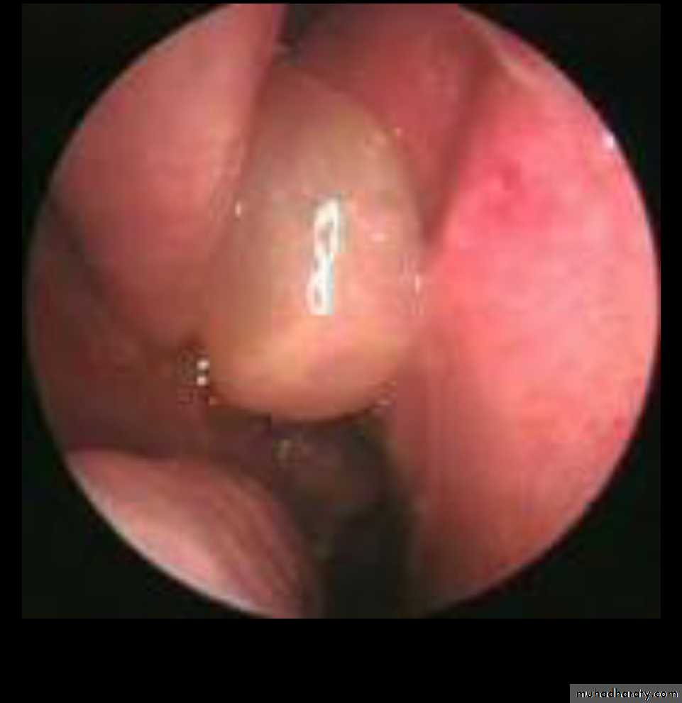 Obstruction of the outflow, occasionally leads to an accumulation of mucous secretions in the absence of direct bacterial invasion, producing a so-called mucocele.