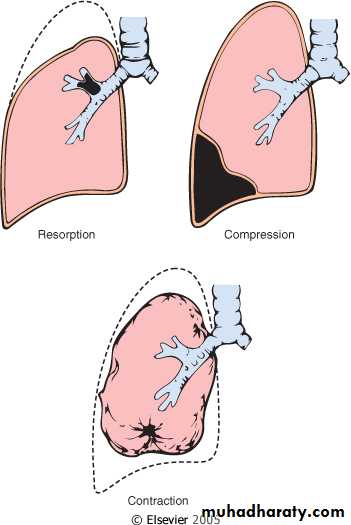 Atelectasis- collapse of previously inflated lung, producing areas with airless parenchymaThree different types: resorption, compression, and contraction atelectasis