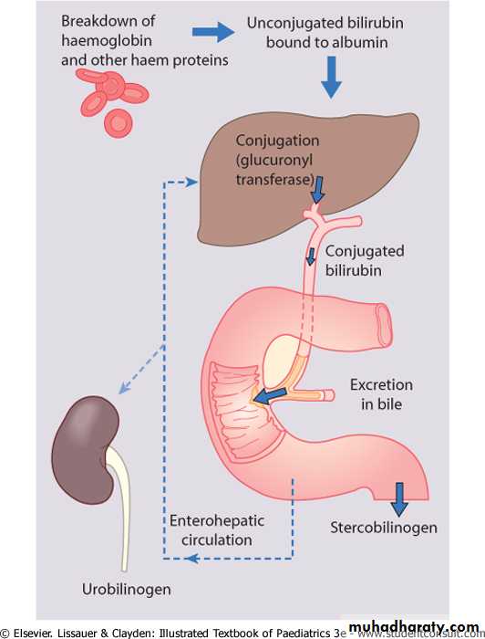 from the breakdown of red cells because of the high Hbconcentration at birth.