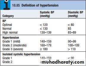 Systemic BP rises with age, and the incidence of cardiovascular disease (particularly stroke and coronary artery disease) is closely related to average BP at all ages.The cardiovascular risks associated with BP depend upon the combination of risk factors in an individual, such as age, gender, weight, physical activity, smoking, family history, serum cholesterol, diabetes mellitus and pre-existing vascular disease. Thus a practical definition of hypertension is ‘the level of BP at which the benefits of treatment outweigh the costs and hazards’