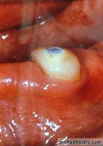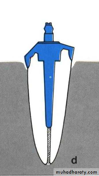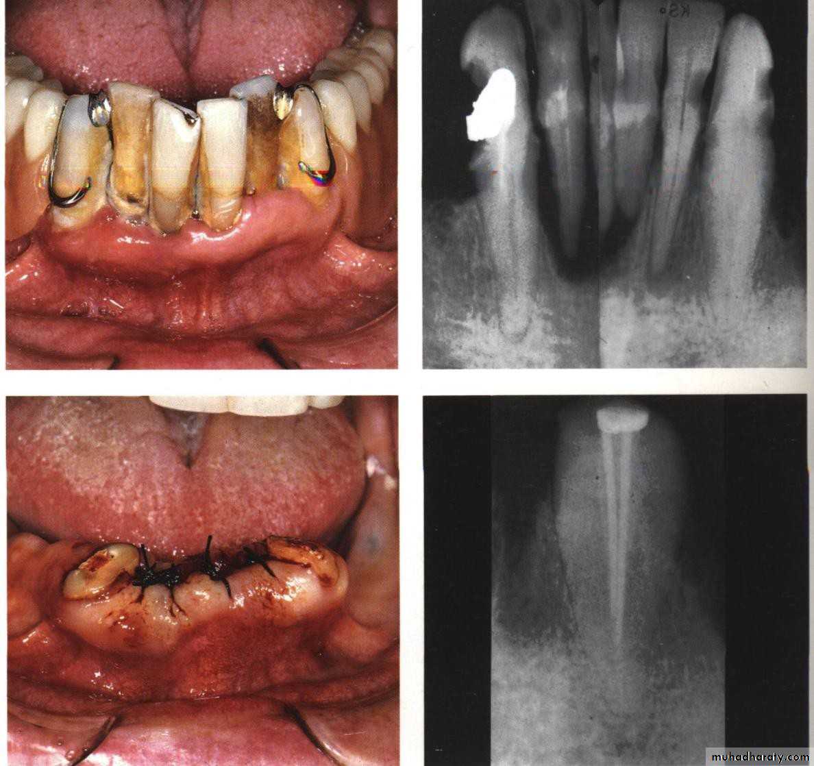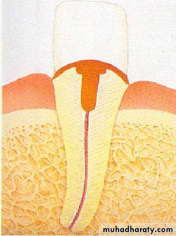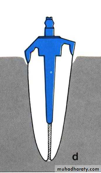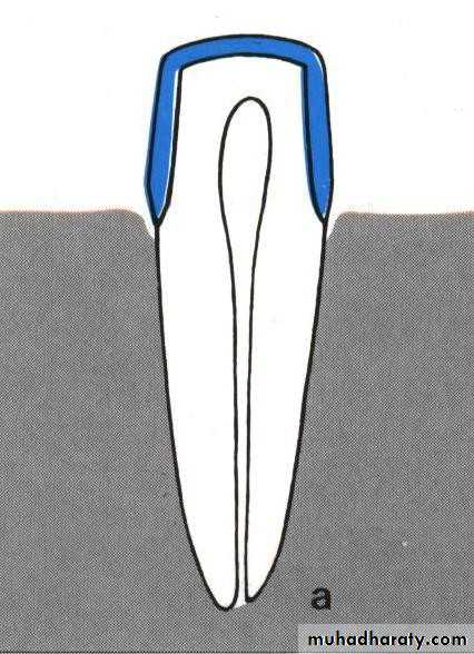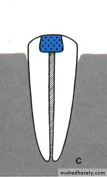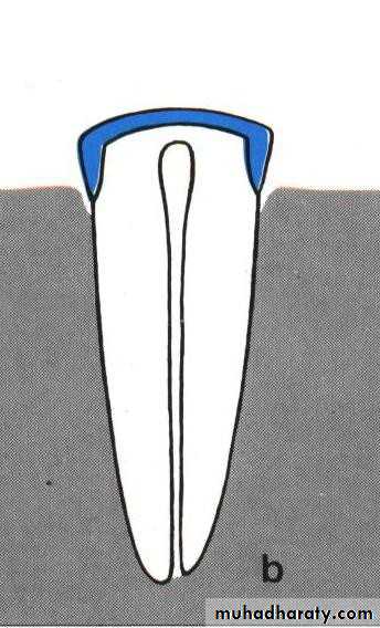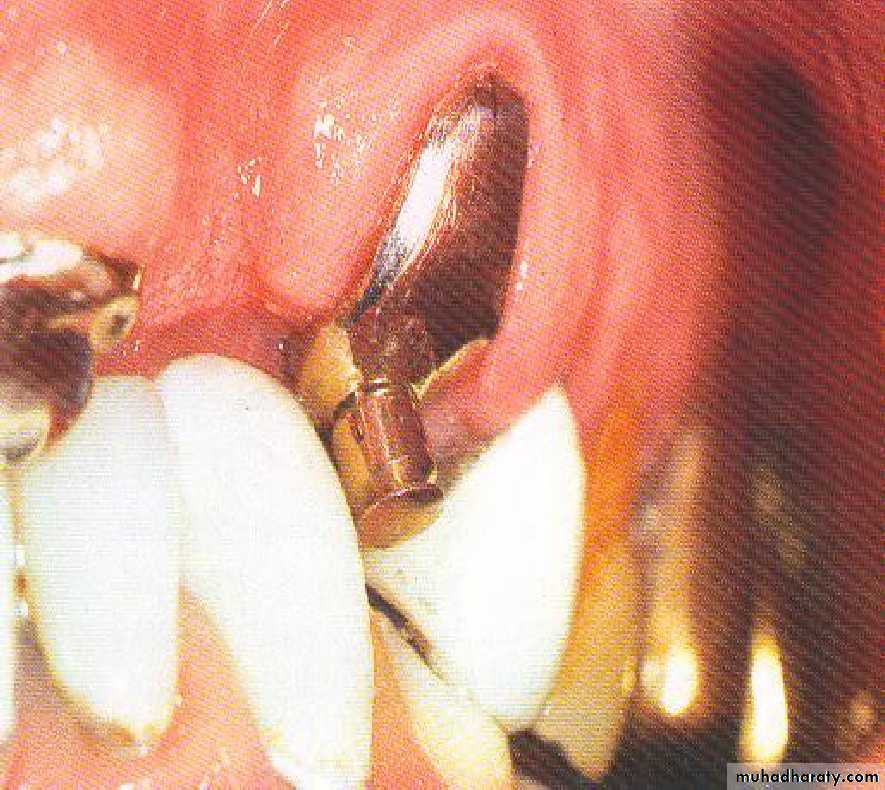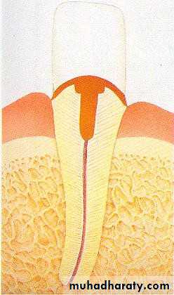 • Abutment reduced to level below gingival margin, so need extra retentive attachment (intracoronally).• RCF .... if needed