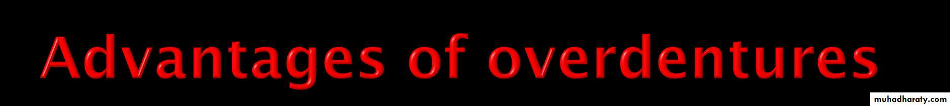 • 6) Enhanced retention of the denture.• 1) Overdentures are occasionally bulkier than