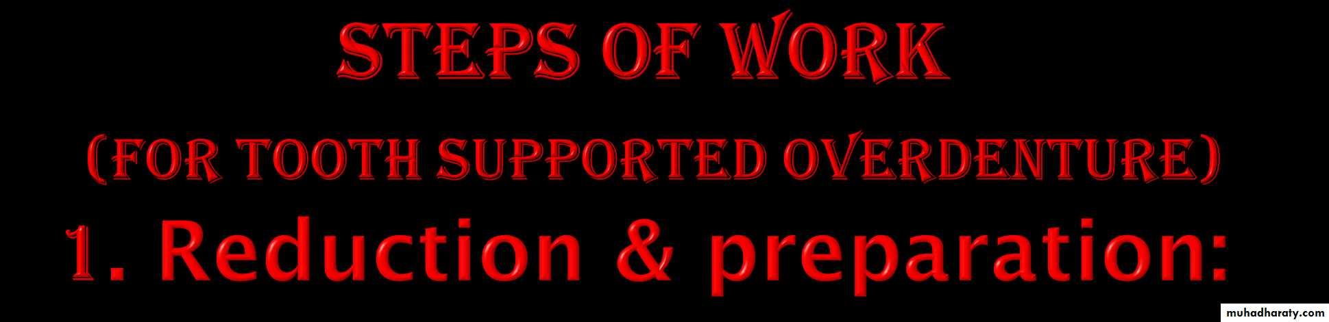 • Deliver the prosthesis, after patient constructed conversation.• Nearly same steps mentioned with the tooth supported OD, except the step of tooth reduction.
