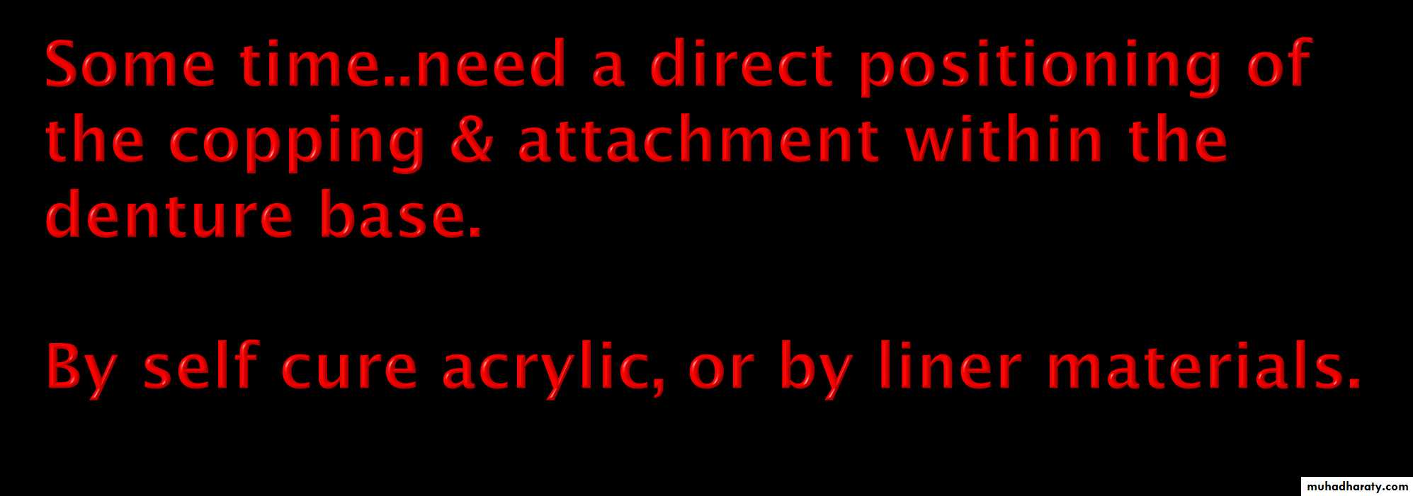 • If using an attachment with the implant, the direct pick up procedure for the female part within the denture base is favourable.