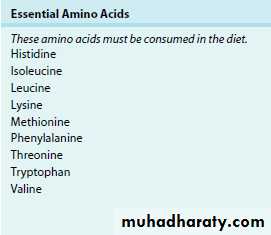 essential amino acids Amino: acids not produced by the body so that they must be obtained from food.