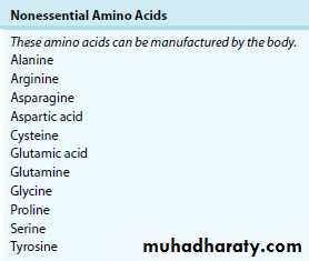 nonessential amino acids :Amino acids that can be manufactured by the body in sufficient quantities and therefore do not need to be consumed regularly in our diet.