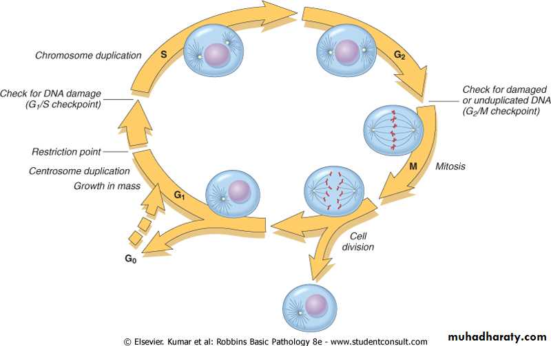 The cell cycle represents the sequence of events that control the DNA replication & mitosis in the proliferation of cells. It consist of a series of steps at which the cell checks for the accuracy of the process and instructs itself to proceed to the next step.The cycle consist of the presynthetic growth phase 1 (G1), the DNA synthesis phase (s), the premitotic growth phase 2 (G2), and the mitotic phase (M).