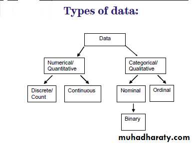 When we first collect data for some project, it will usually be in a ‘rawخام ’ form . That is, not organized غير منظمهin any way, making it difficult to see what’s going on. Descriptive statistics is a series of procedures designed to illuminateالقاء الضوء the data, This may mean sorting the data by size; perhaps putting it into a table, maybe presenting it in an appropriate chart, or summarizing it numerically; and so on.An important consideration in this process is the type of variable concerned. The data from some variables are best described with a table, some with a chart, some, perhaps, with both. Other variables, a numeric summary is more appropriate.