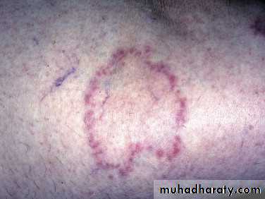 Lesions begin as multiple small, circular macules of various colors (pink, white, or brown) that enlarge radially.A spectrum of clinical presentations and colors: