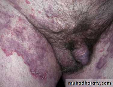 Involvement of the scrotum is unusual (unlike candida).