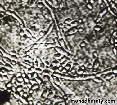 Clinically and in potassium hydroxide preparations, infection by Candida and dermatophytes may appear to be identical.