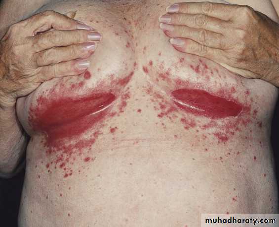 The primary lesion is a pustule, the contents of which dissect horizontally under the stratum corneum and peel it away.The infection is confined to the mucous membranes and intertriginous areas. Why?