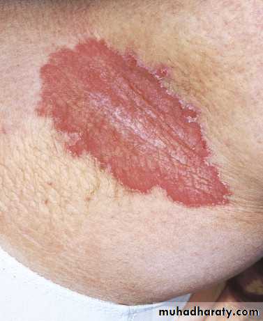 DDx: intertrigo, erythrasma, inverse psoriasis, seborrheic dermatitis and candidaisis.