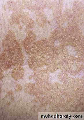 • Tan to dark brown macules and patches.
