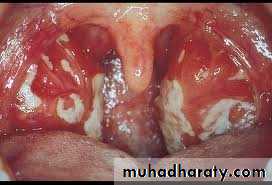 Patients may complain of malaise, fatigue, acute or prolonged(>1wk) fever, headache, nausea, abdominal pain, and myalgia.The sore throat which is often accompanied by moderate to severe pharyngitis with marked tonsillar enlargement, occasionally with exudates. Palatal petechiae at the junction of the hard and soft palate are frequently seen. The pharyngitis resembles that caused by streptococcal infection. This prodromal period may last 1-2 wk.