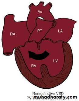When a small communication is present (usually <0.5 cm2), the VSD is called restrictive and right ventricularpressure is normal.