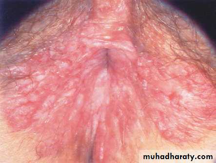 Extensive anal intraepithelial neoplasia (AIN), which extends intra-anally.