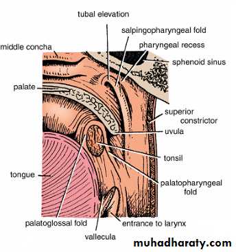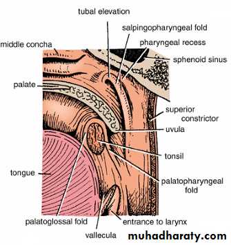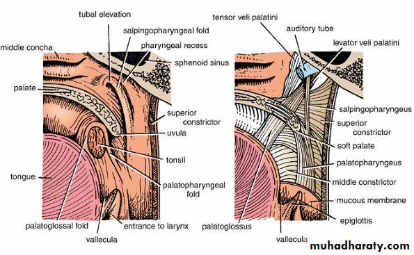 • The pharyngeal recess is a depression in the pharyngeal wall behind the tubal elevation.