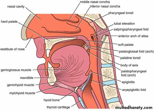 • This lies behind the oral cavity. The floor is formed by the posterior one third of the tongue and the interval between the tongue and epiglottis.