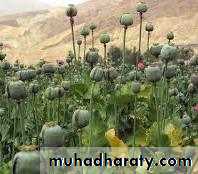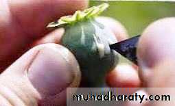 Codeine It can be taken from opium or synthesized by methylation of morphine. Codeine has a low affinity for the µ and k opioid receptors, 1/20 of the analgesic activity of morphine. It has a high oral/ parenteral potency ratio so when given orally , it is 60% as potent as when injected IM. It is useful as an antitussive and for the treatment of diarrhoea. side-effects. Respiratory depression is seldom a problem. This explains its traditional use to provide analgesia for head-injured and neurosurgical patients. Doses: 60 mg , of it 10% undergoes demethylation to morphine – this possibly contributing to the analgesic effect.Uses : Mild to moderate pain, Diarrhoea and excessive ileostomy output and Antitussive. Codeine has antitussive effects, is especially useful in relieving painful cough. It also exerts a drying action on the respiratory mucosa that may be useful (e.g., in bronchorrhea). At doses used for cough suppression, codeine has minimal respiratory depressant effects. Nausea, vomiting, constipation, tolerance to antitussive as well as analgesic effects, and physical dependence can occur, but potential for abuse is low. Contraindications: Airway obstructionAdministration: Orally 30–60 mg 4–6 hourly (the analgesic effect of 30 mg codeine orally= 600 mg aspirin), IM 30–60 mg 4–6 hourlyAdverse effects: drowsiness, constipation, nausea and vomiting and respiratory depression (less GIT side effects and respiratory depression than morphine). Less addiction liability and less withdrawal than morphineCausions: Enhanced sedative and respiratory depression from interaction with: benzodiazepines, Antidepressants, anti-psychotics, MAOI (hypertension, hyperpyrexia, convulsions and coma), Head injury and neurosurgical patients (may exacerbate ↑ ICP as a result of ↑ PaCO2).Heroin:It is diacetylated morphine, with more rapid onset and shorter duration than morphine, but with greater analgesic effect 3 mg heroin= 10 mg morphine, a drug of abuse and not used clinically.