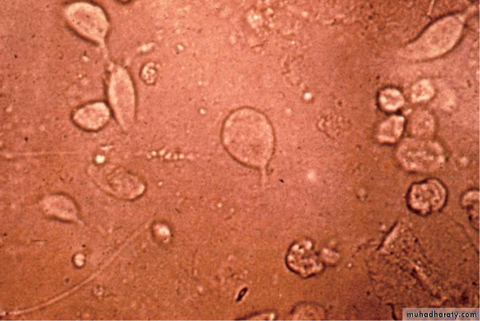 Motile trichomcnads on microscopic examination or wet preparation