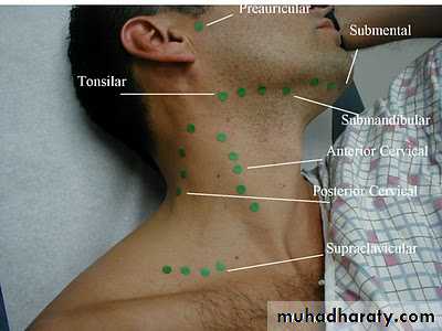 Thorough history and complete head and neck examination after assuring there is no other region involvement to exclude generalized lymphadenopathyPhysical examination