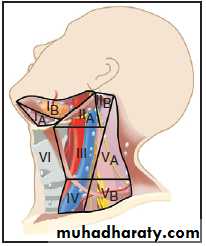 IA Midline; anterior to the digastric muscle and superior to the hyoid bone. Submental -IB Lateral to zone IA but medial or anterior to the submandibular gland Submandibular nodes