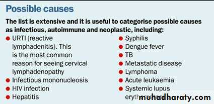 Mostly diagnosed on the basis of a careful history and physical examination.Localized adenopathy should prompt a search for an adjacent precipitating lesion.