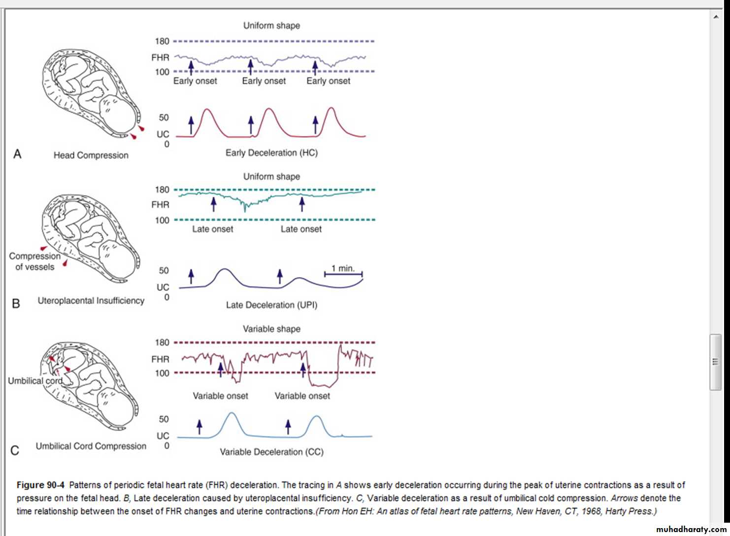 Intrauterine growth restriction with increased vascular resistance may be the 1st indication of fetal hypoxia. During labor, the fetal heart rate slows. Continuous heart rate recording may reveal a variable or late deceleration pattern particularly in infants near term.