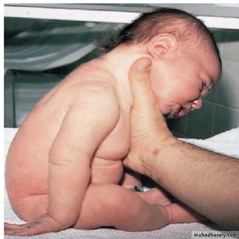 Clavicles: usually results when there is difficulty in the delivery of the shoulder in vertex presentation and of the extended arms in breach deliveries. The baby is unable to move the arm freely on the affected side, bony irregularity may be palpated, occasionally discoloration may be visible over the fracture side. The Moro reflex is absent on the affected side.Extremities: fracture of the humerus and the femur, spontaneous movement and Moro reflex is absent on the affected extremity.