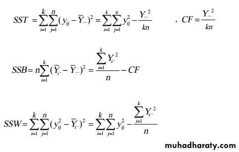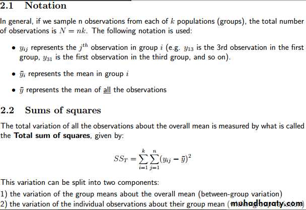 3- The ANOVA Model : Test of hypothesis about differences among three or more population means