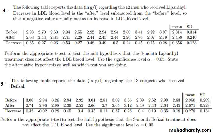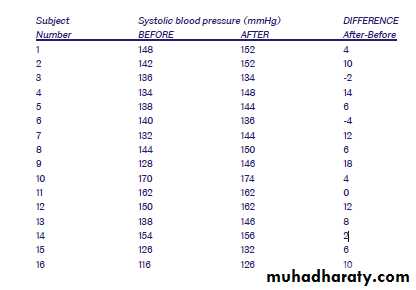 Table(1): Systolic blood pressure levels in 16 middleaged men before and after a standard exercise