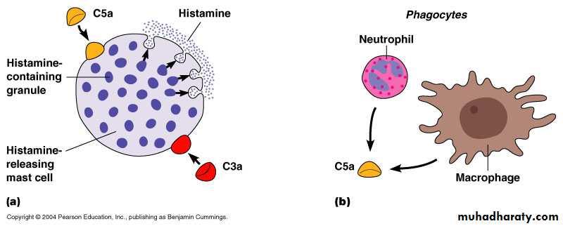 C3aC3a increases the inflammatory response by binding to mast cells and causing them to release histamine