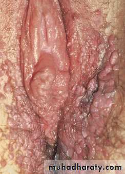 • florid lesions resembling warts (condylomata lata) mainly in peri-anal area